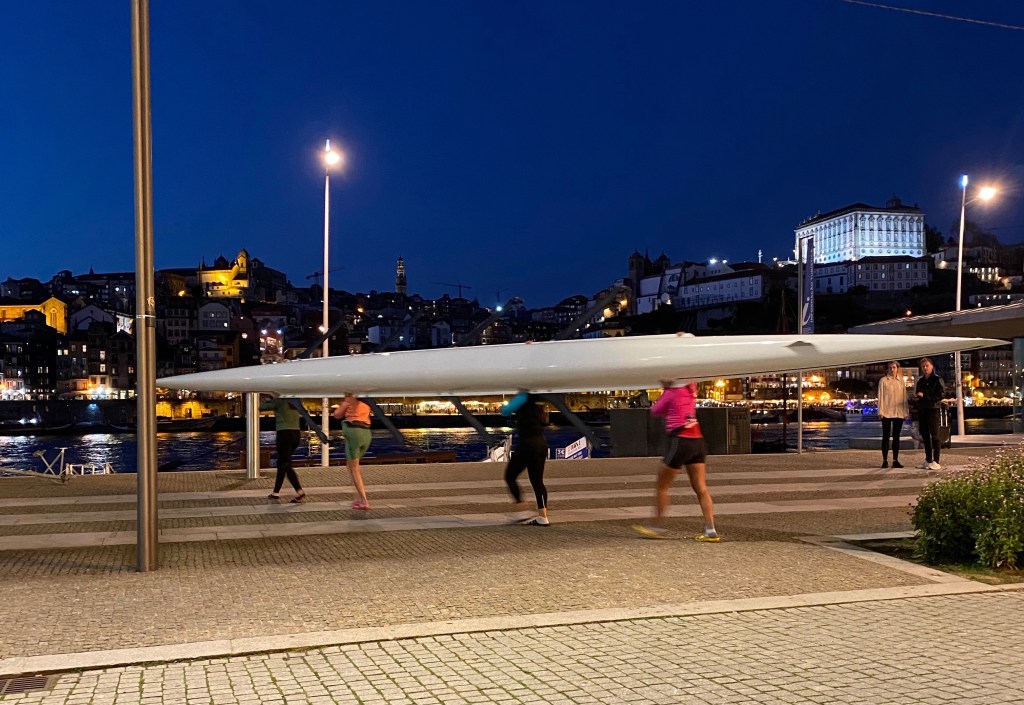Plötzlich gingen im Nachbarhause die Pforten auf und ein paar Mädels trugen ihre Ruderboote zum Fluss. Training ging los.